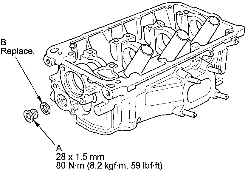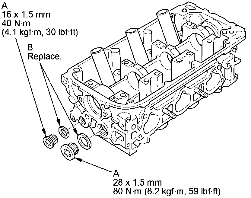 NOTE: When installing the sealing bolts (A), always use a new washer (B).