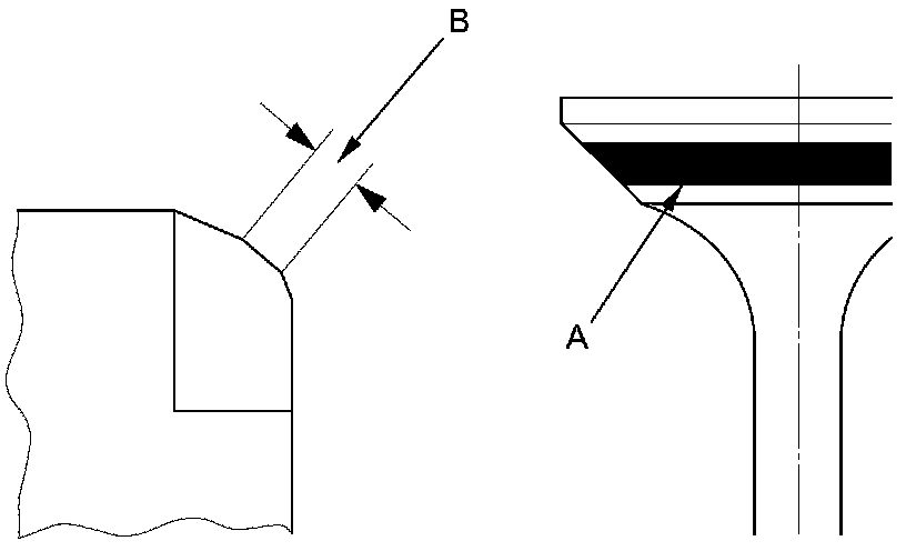 7. The actual valve seating surface (B), as shown by the blue compound, should be centered on the seat.