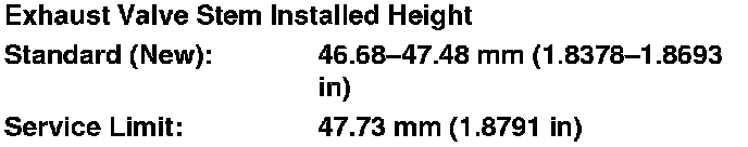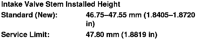 9. If the valve stem installed height is over the service limit, replace the valve and recheck. If it is still over the service limit, replace the cylinder head; the valve seat in the head is too deep.