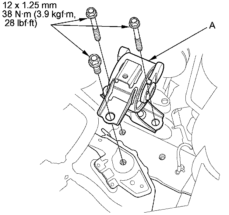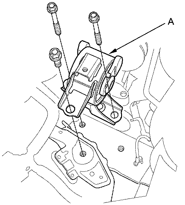 2. Loosely install the upper half of the side engine mount bracket (A).