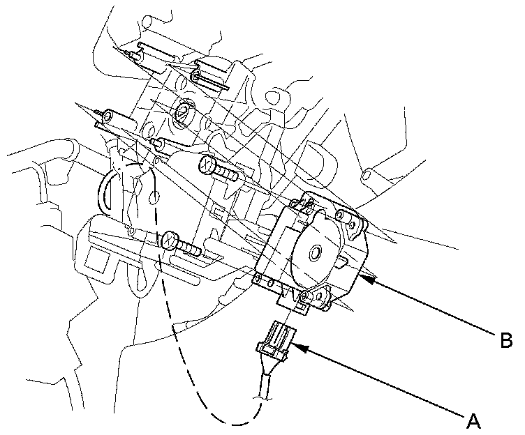 2. Disconnect the 7P connector (A) from the driver's mode control motor (B). Remove the self-tapping screws and the driver's mode control motor from the heater unit.