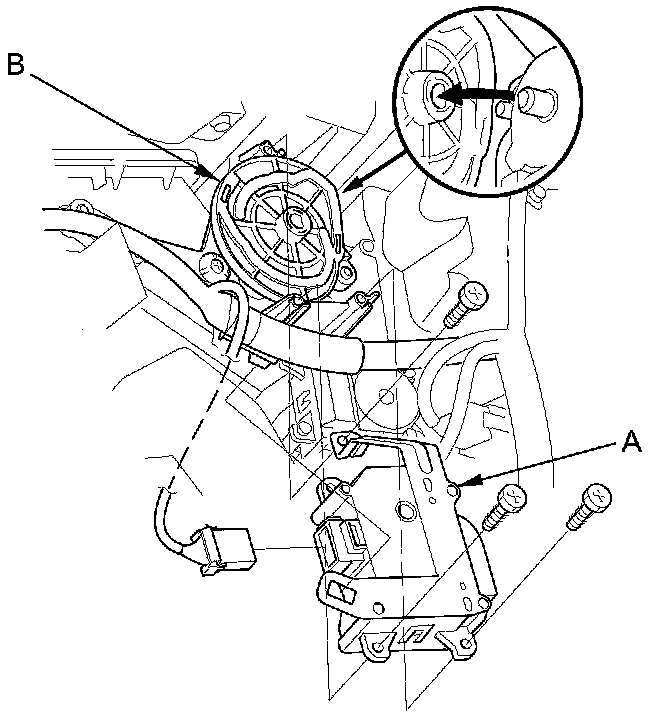 4. Install the mode control motor (A) while holding the motor lever (B).