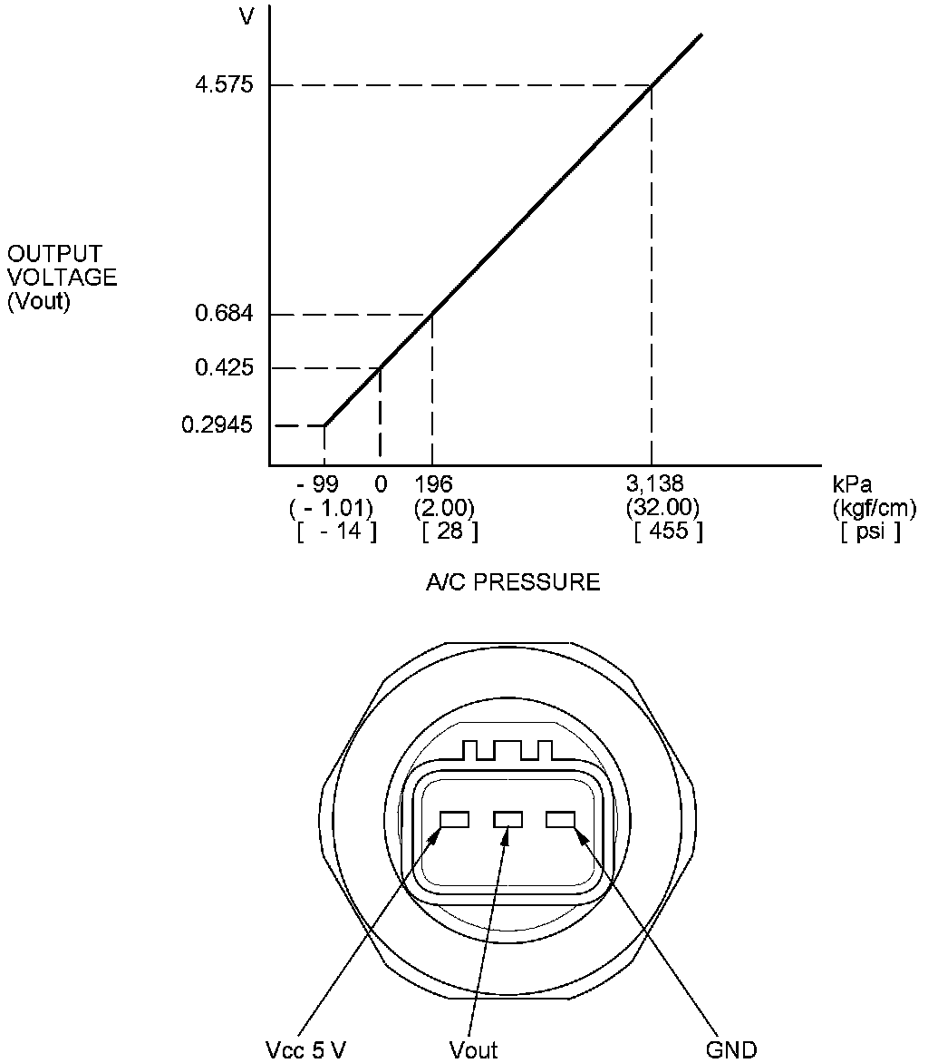 The response of the A/C pressure sensor is shown in the graph.