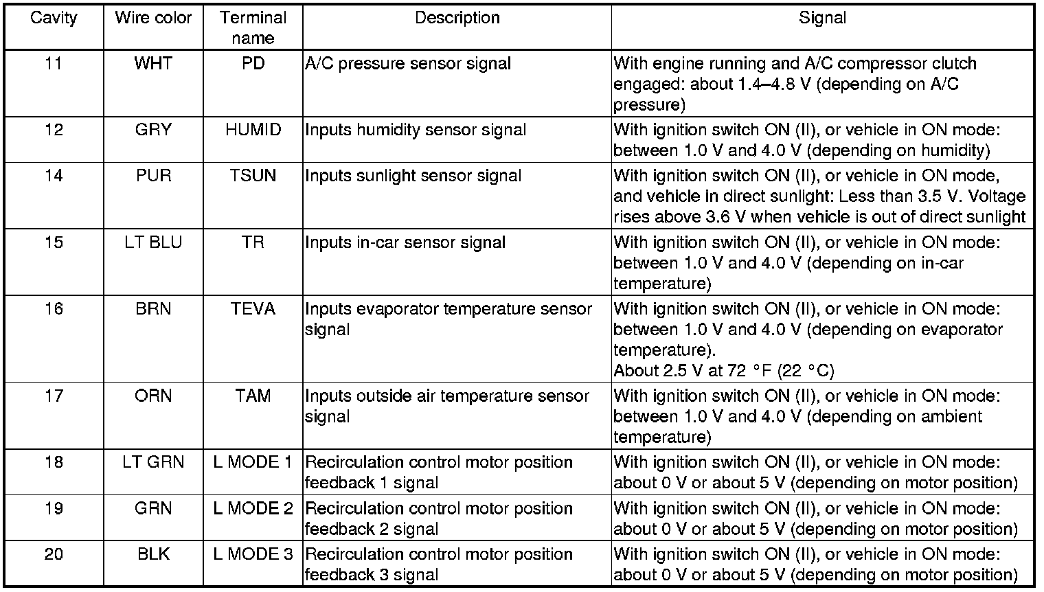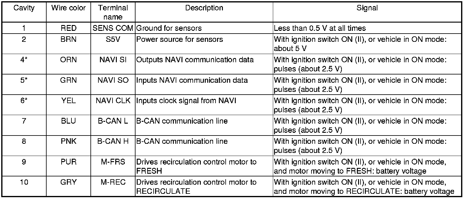 Climate Control Unit Inputs and Outputs (cont'd)