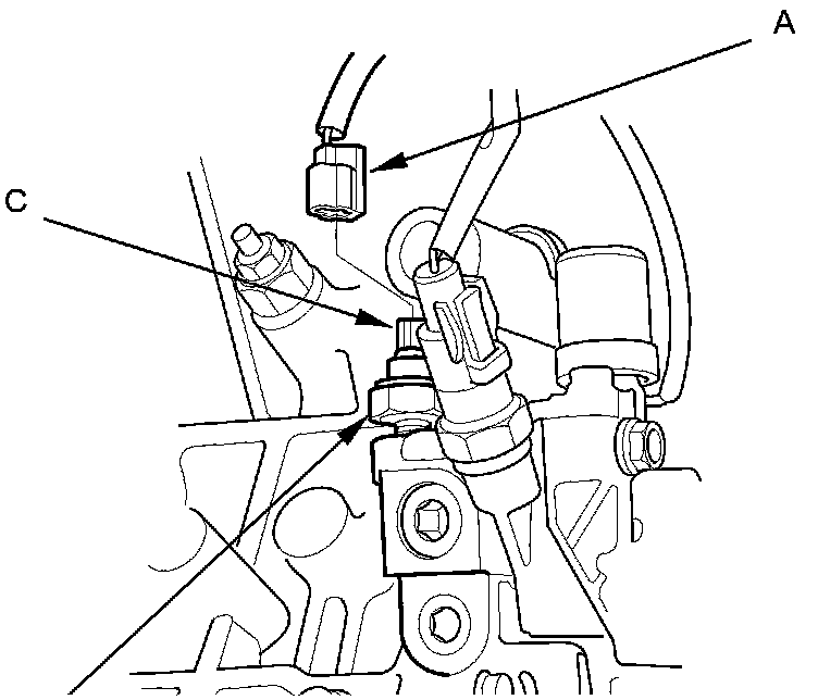 2. Check for continuity between terminal (C) and the engine (ground). There should be no continuity with the engine stopped. There should be continuity with the engine running.