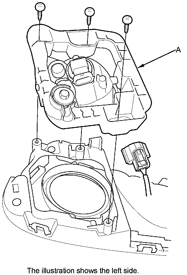 2. Remove the three screws, then remove the fog light (A) from the front bumper.