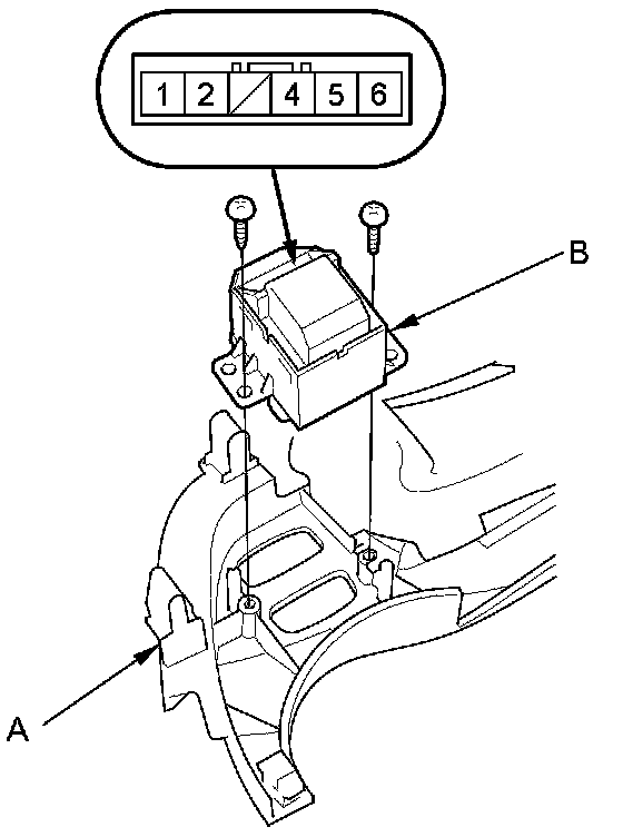 2. Remove the two screws and Dashlight brightness controller switch (B) from the instrument fascia.