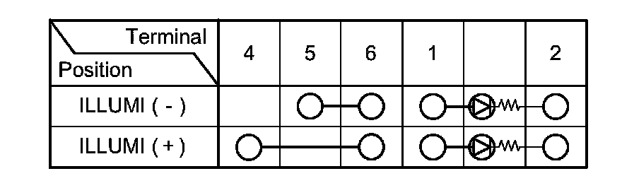 3. Check for continuity between the terminals in each switch position according to the table.