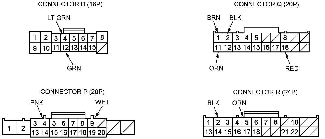 3. Disconnect driver's under-dash fuse/relay box connectors D, P, Q, and R.