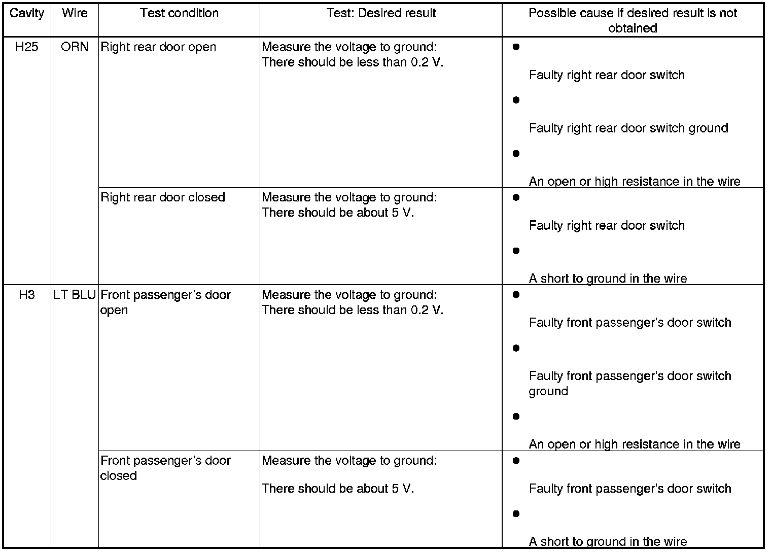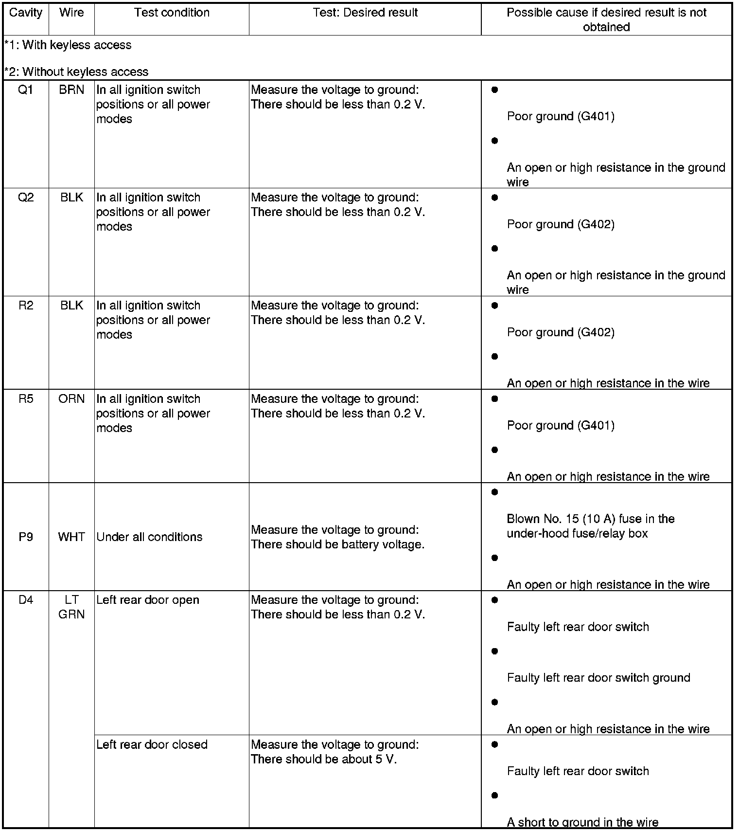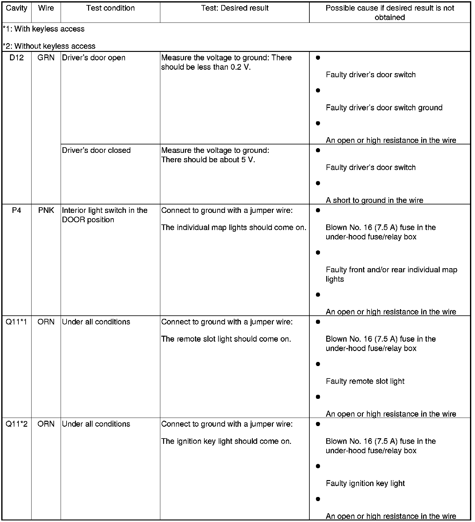 Entry Lights Control System (Drivers and Passengers MICU, and Door Multiplex Control Unit) Input Test