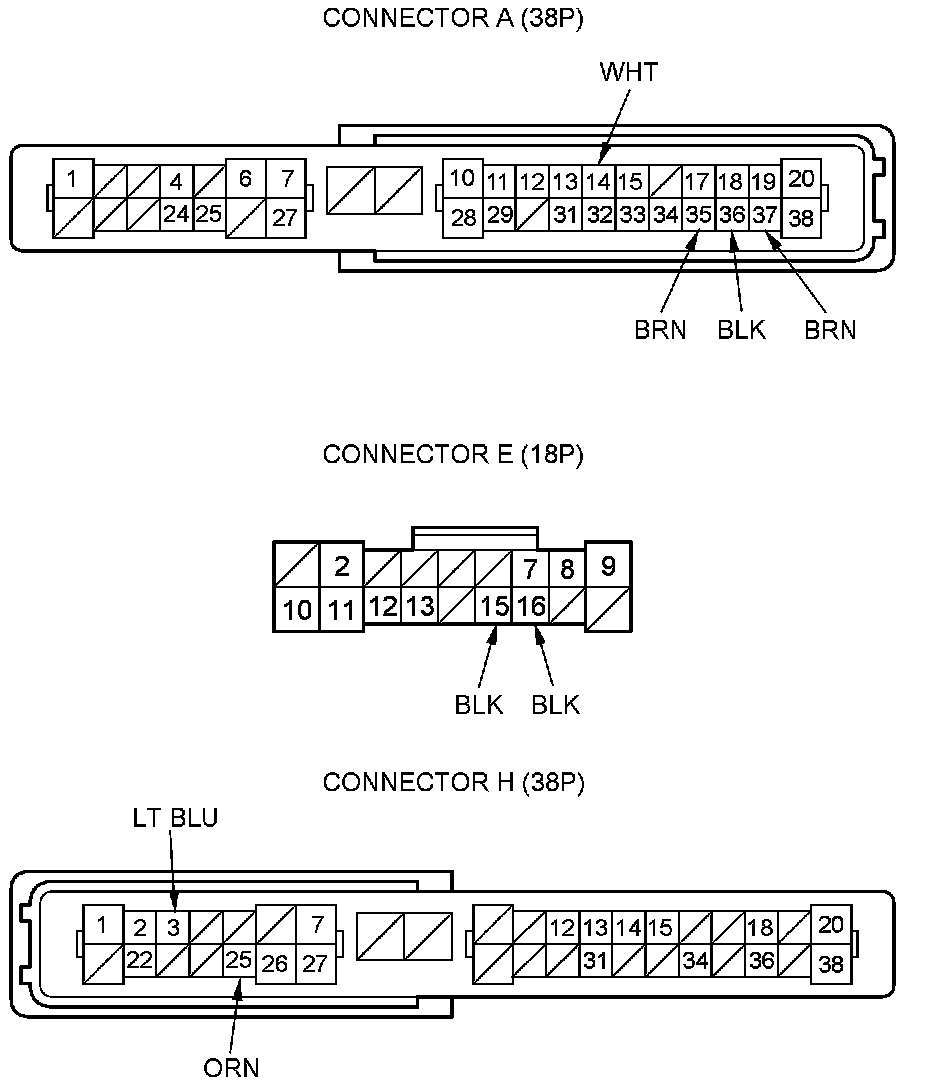 NOTE: All connector views are wire side of female terminals.