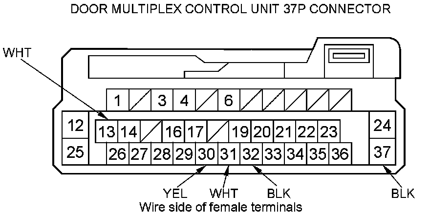 13. Reconnect the 37P connector to the door multiplex control unit, and do the following input tests: