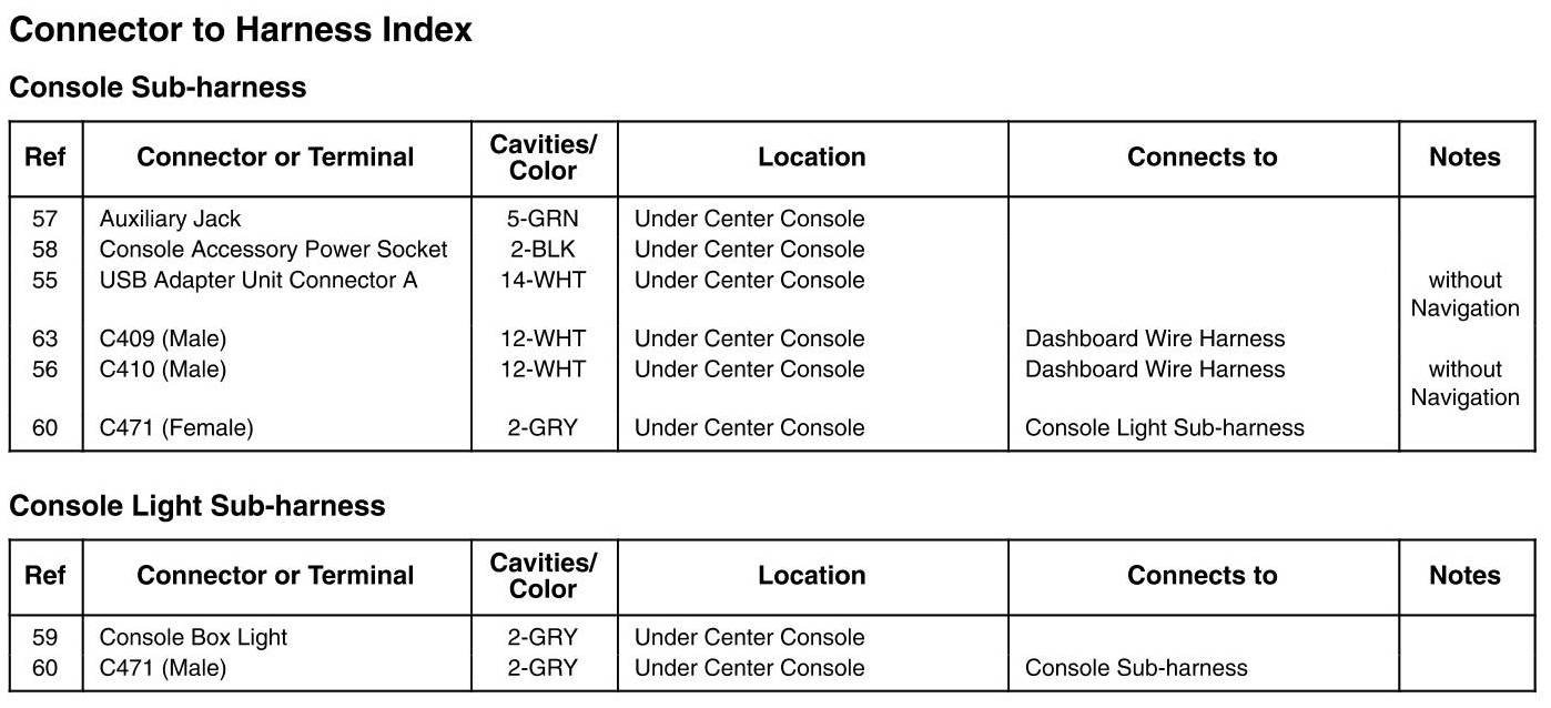 Console Sub-Harness and Console Light Sub-Harness