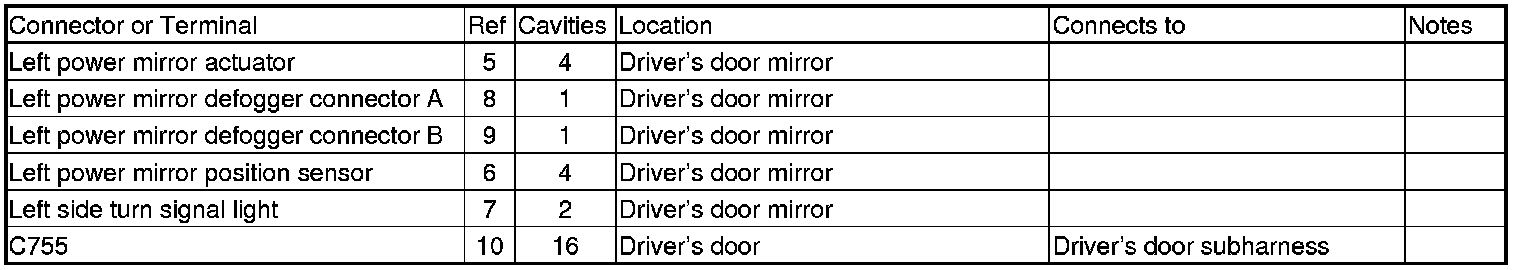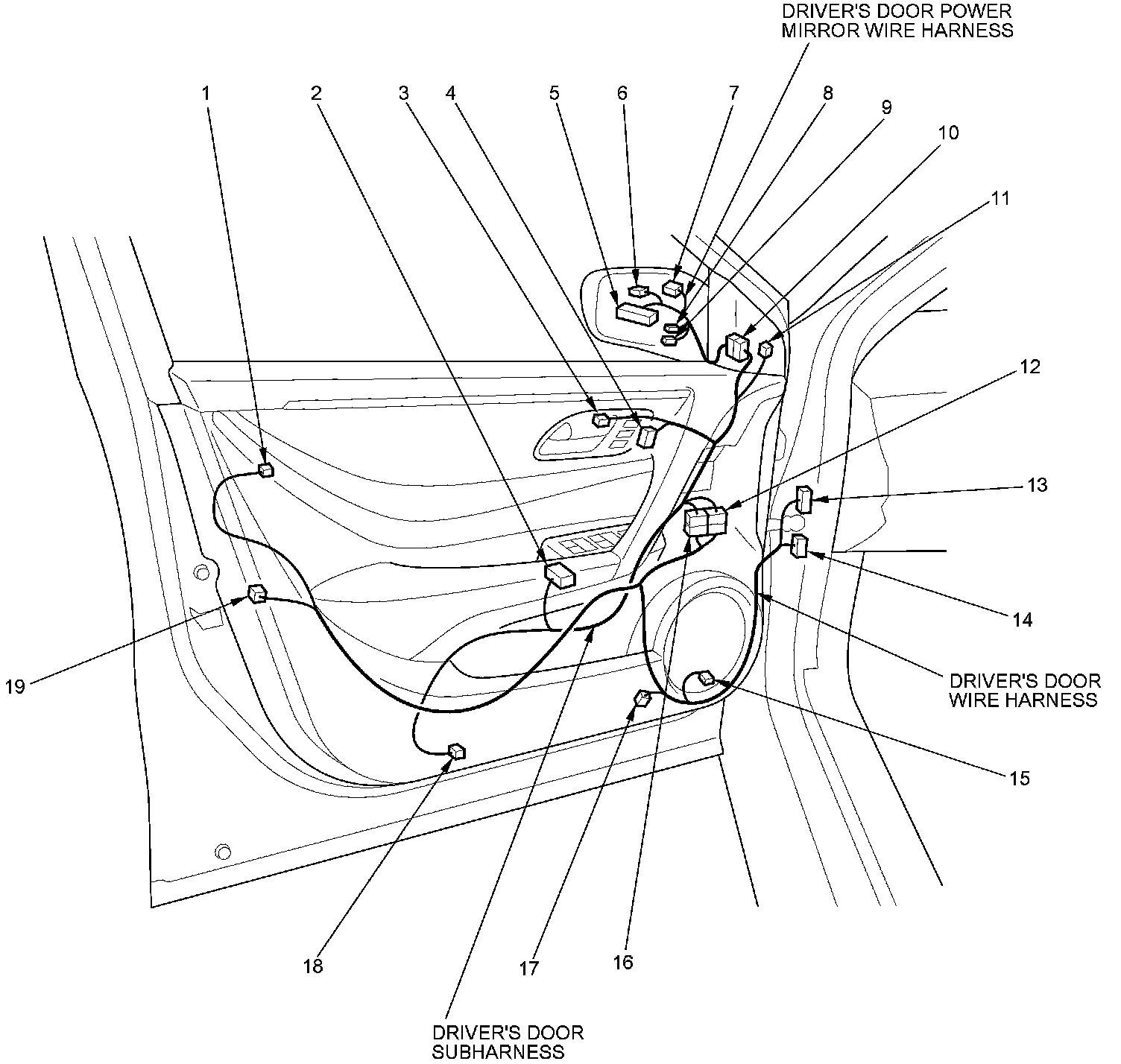 Driver's Door Power Mirror Wire Harness