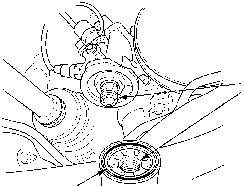 2. Inspect the filter to make sure the rubber seal is not stuck to the oil filter seating surface of the engine.