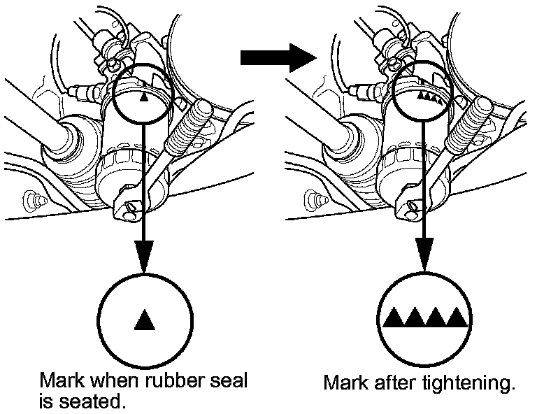 - Tighten the filter by turning it clockwise three numbers or marks from the one you noted. For example, if mark v is at the bottom when the seal is lightly seated, tighten the filter until the mark vvvv comes around to the bottom.