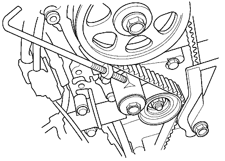 5. If the auto-tensioner has extended and the timing belt cannot be installed, do the timing belt replacement procedure Timing Belt Replacement.
