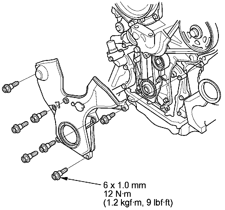 10. Install the timing belt guide plate as shown.