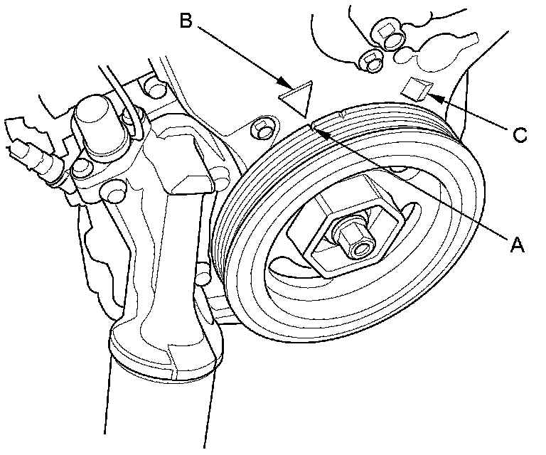 3. Front camshaft pulley (C)