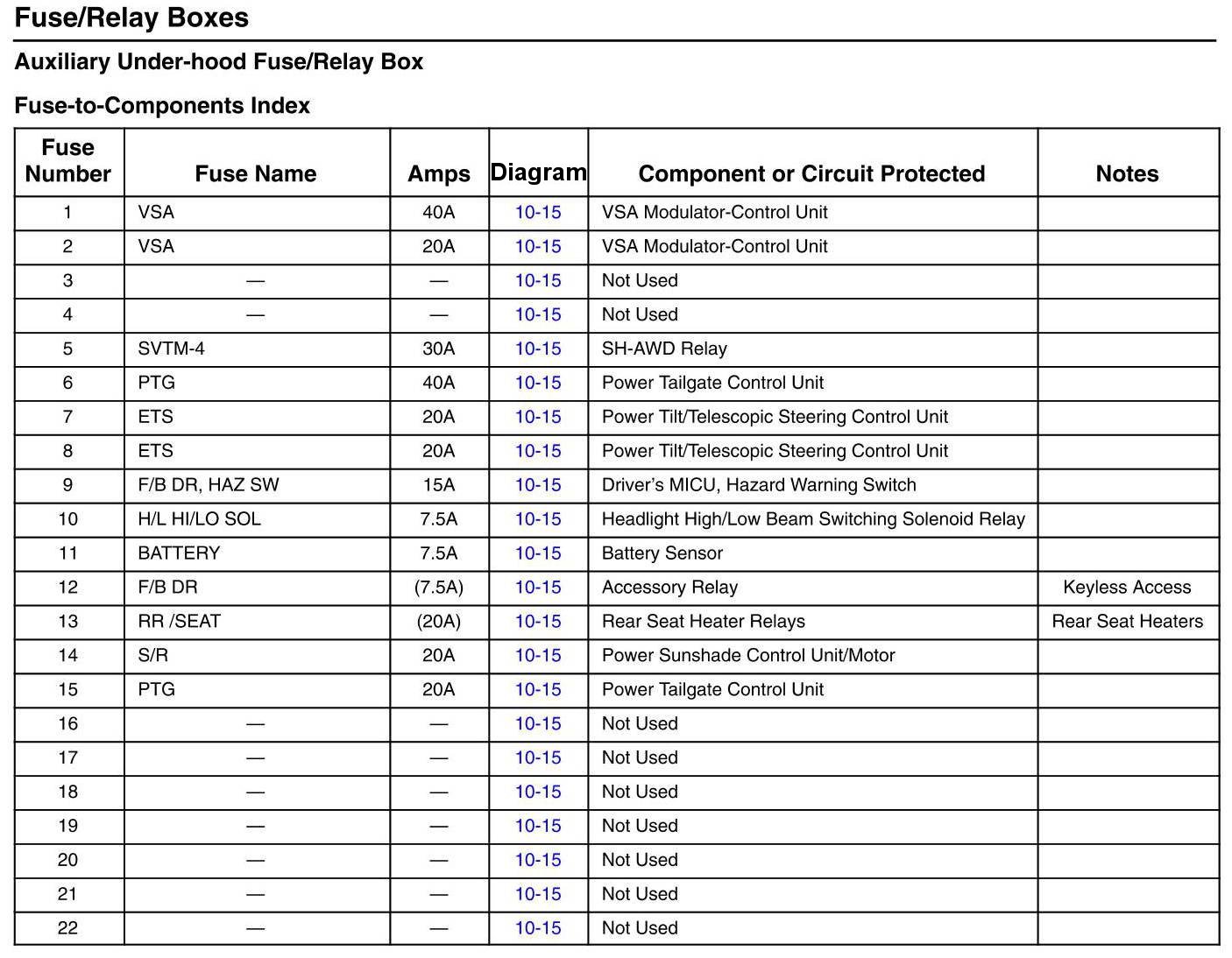 Auxiliary Under-Hood Fuse/Relay Box - Fuse-to-Components Index