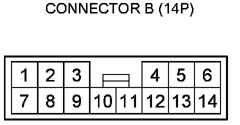 There should be battery voltage at terminal B5 when battery power is connected to terminals C4 and B12, and body ground is connected to terminals B4 and B14. There should be no voltage at terminal B5 when terminal B14 is disconnected.
