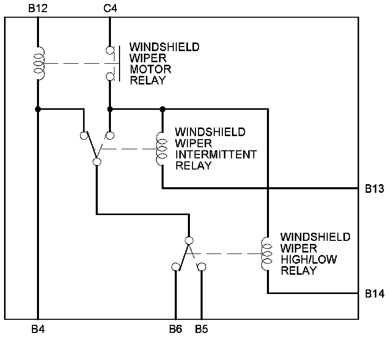 There should be continuity between terminals C4 and B13, and terminals C4 and B14 when battery power is connected to terminal B12, and body ground is connected to terminal B4. There should be no continuity between terminals C4 and B13, and terminals C4 and B14 when power is disconnected.