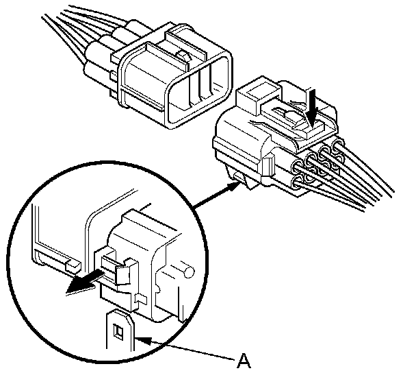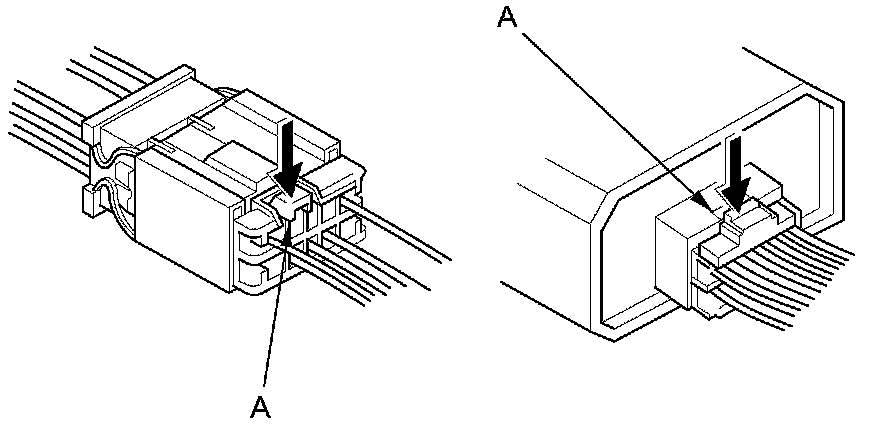 - Before connecting connectors, make sure the terminals (A) are in place and not bent.