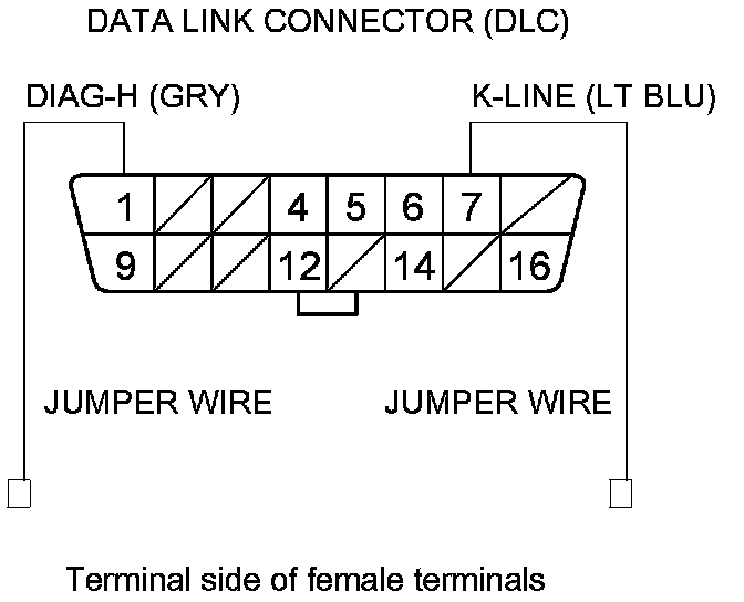 28. Connect DLC terminal No. 7 to body ground with a jumper wire (with keyless access system, also connect DLC terminal No. 1 to body ground with a jumper wire).