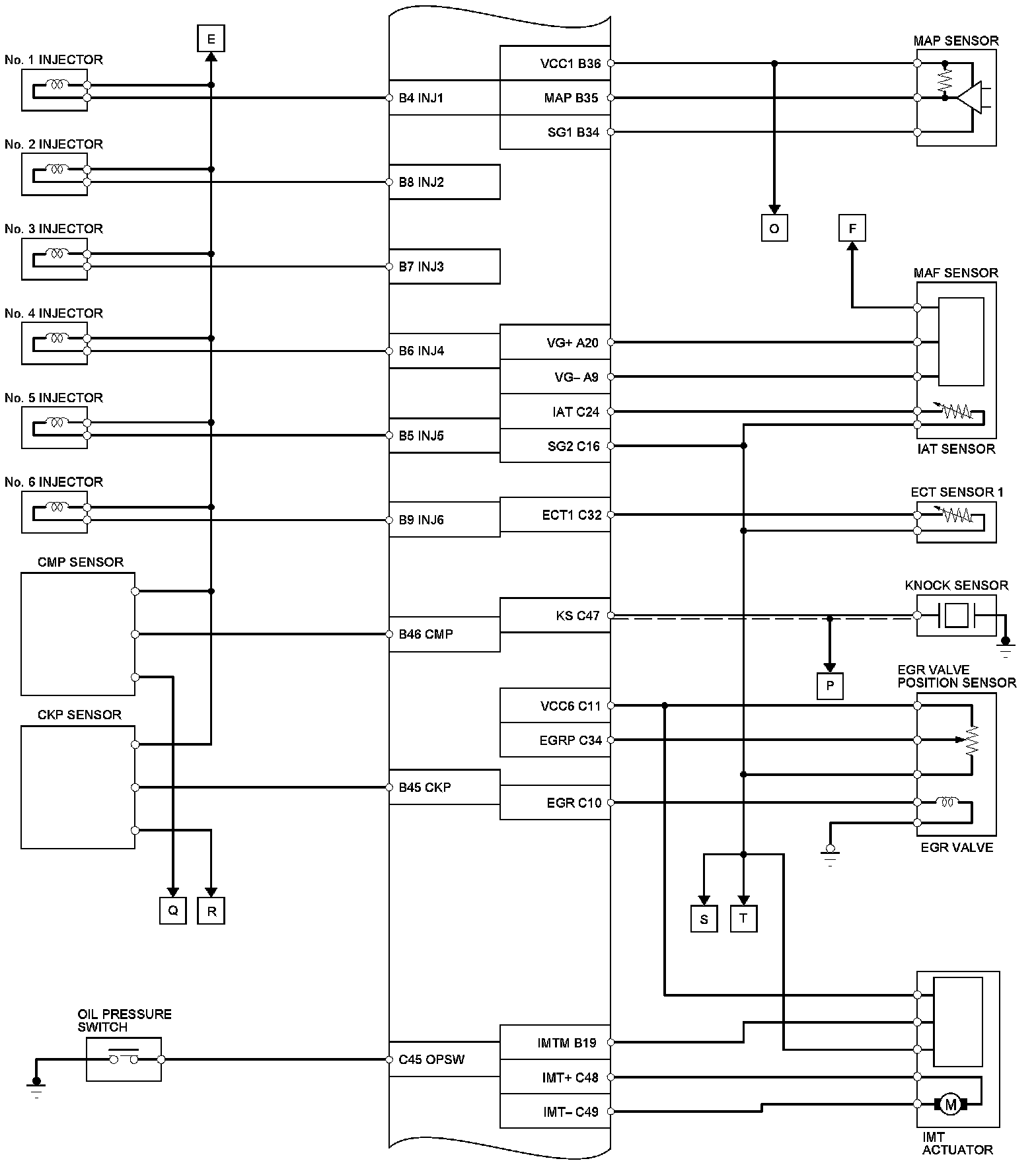 PCM Inputs and Outputs at PCM Connector A (Square) (49P)