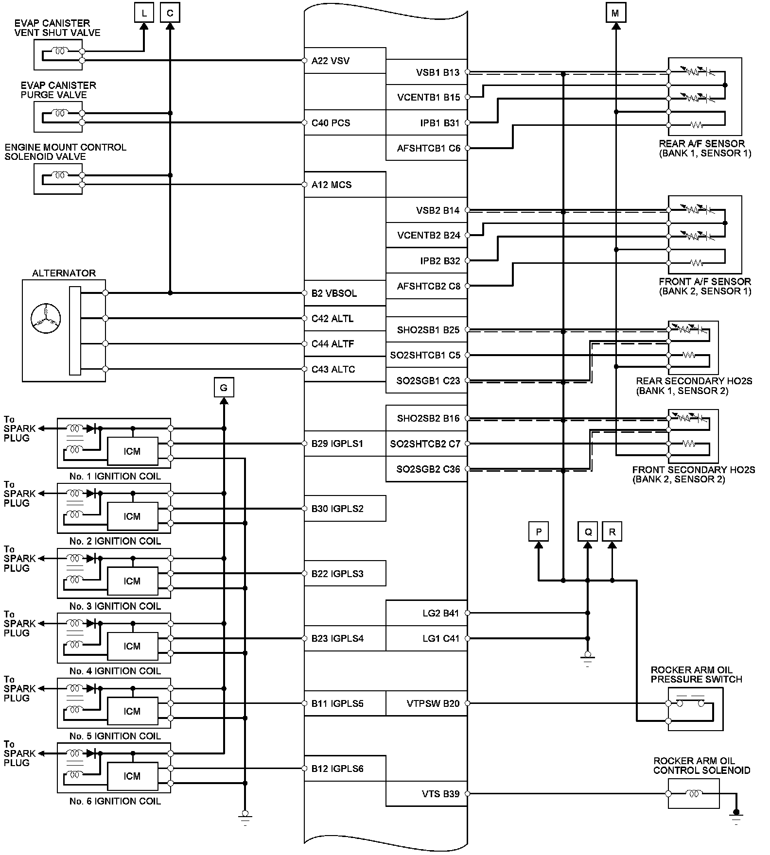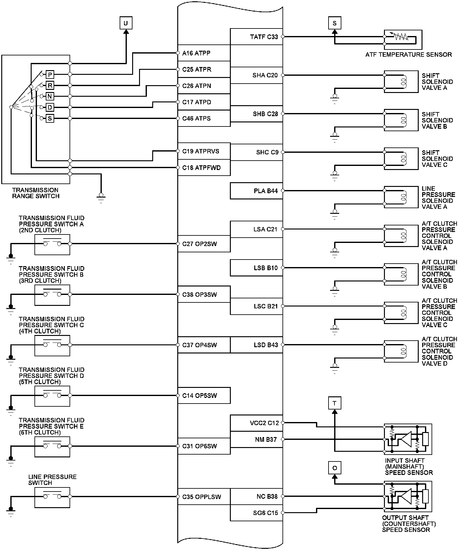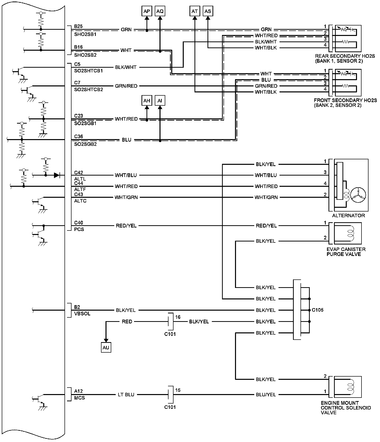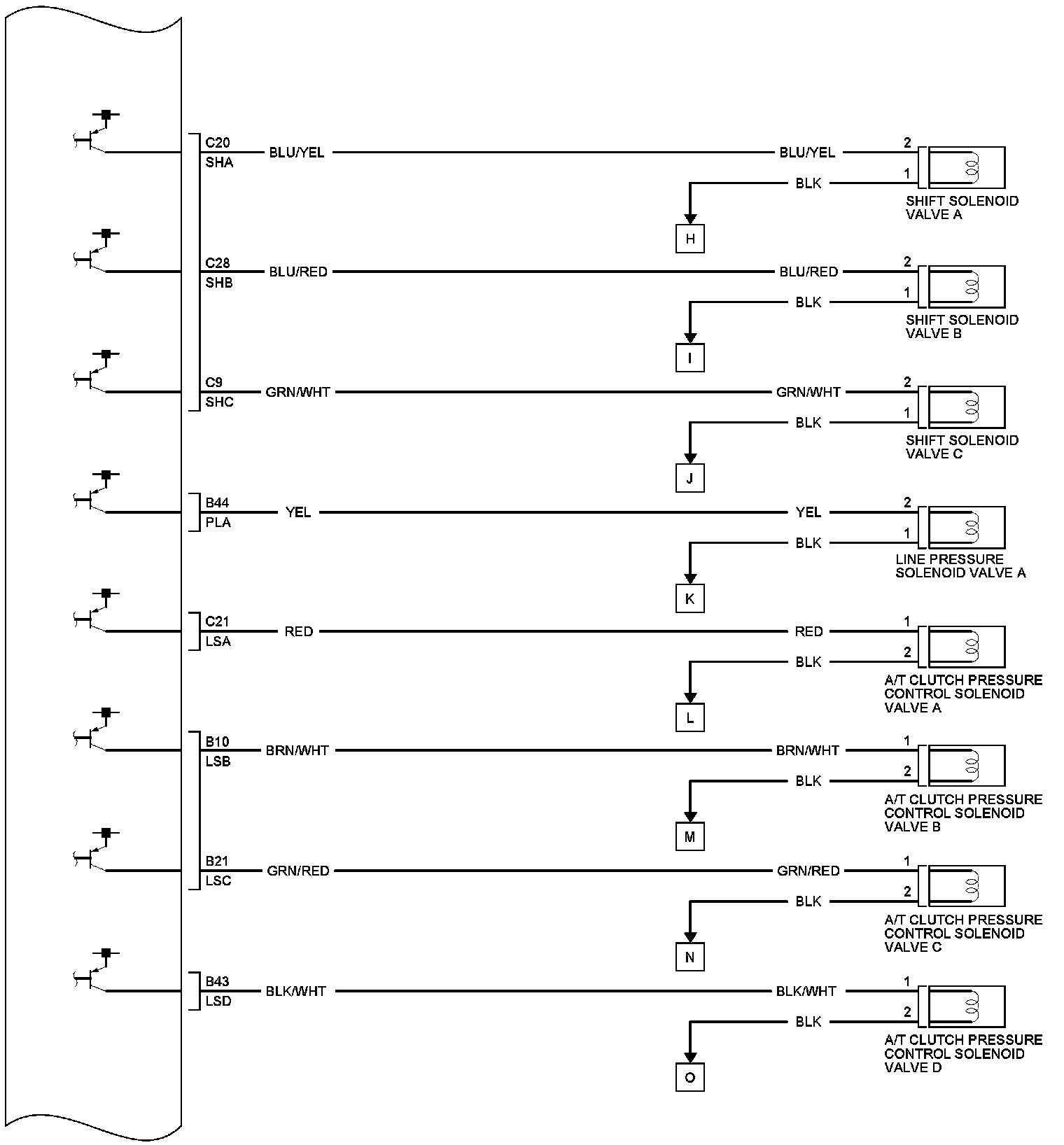 PCM Inputs and Outputs at PCM Connector C (Circle) (49P)