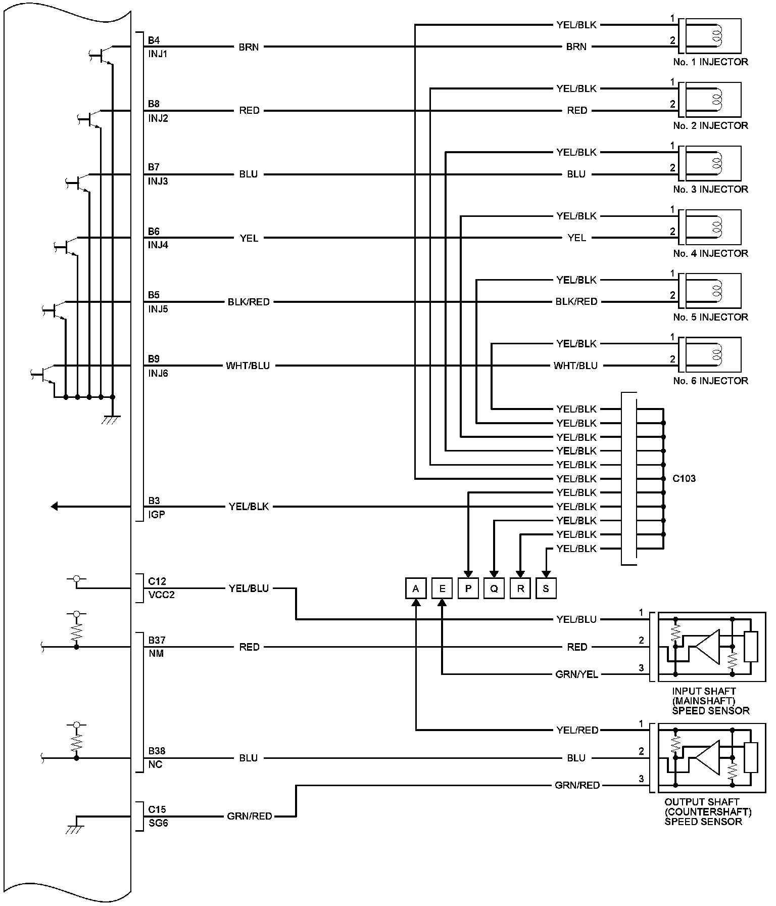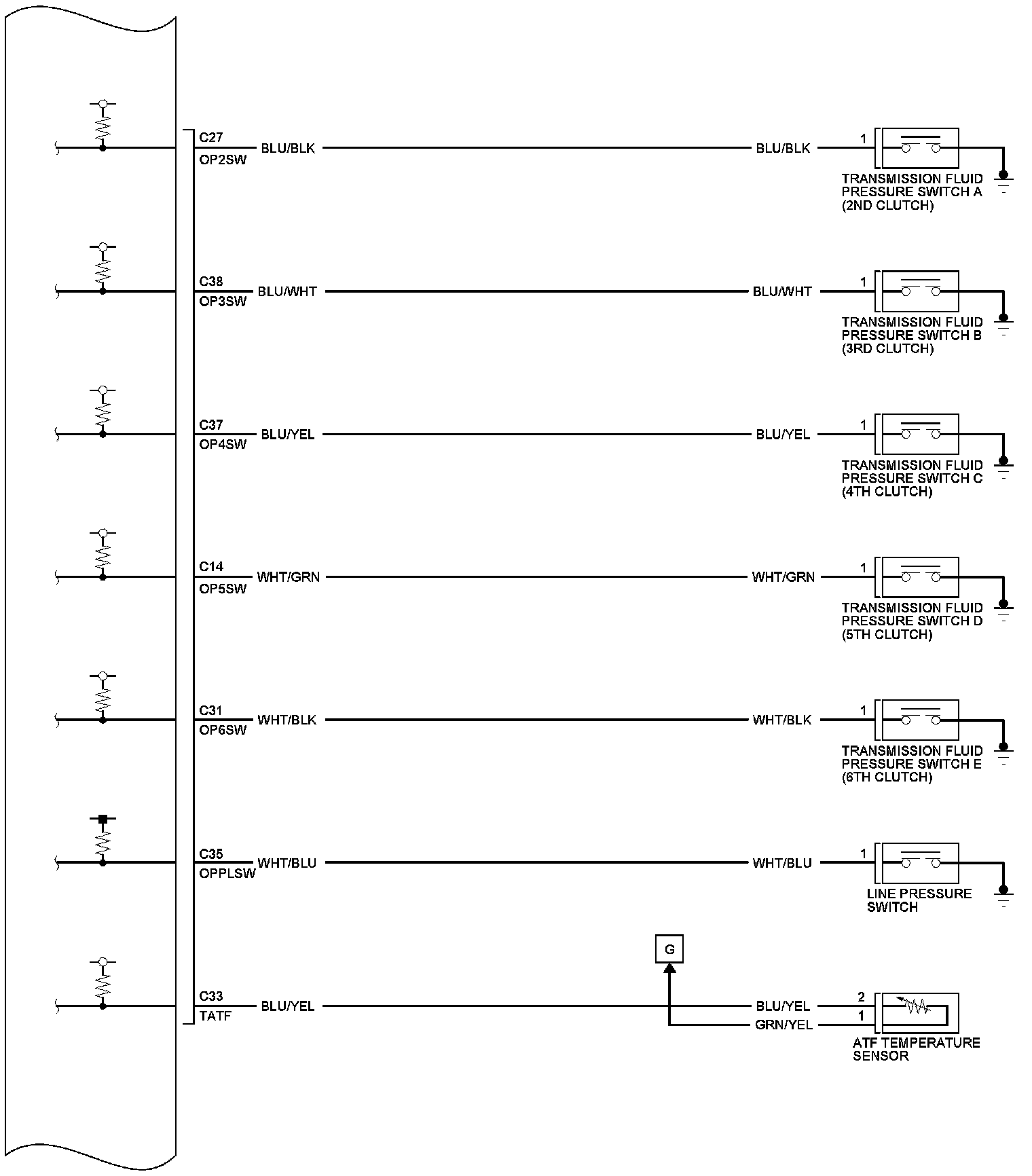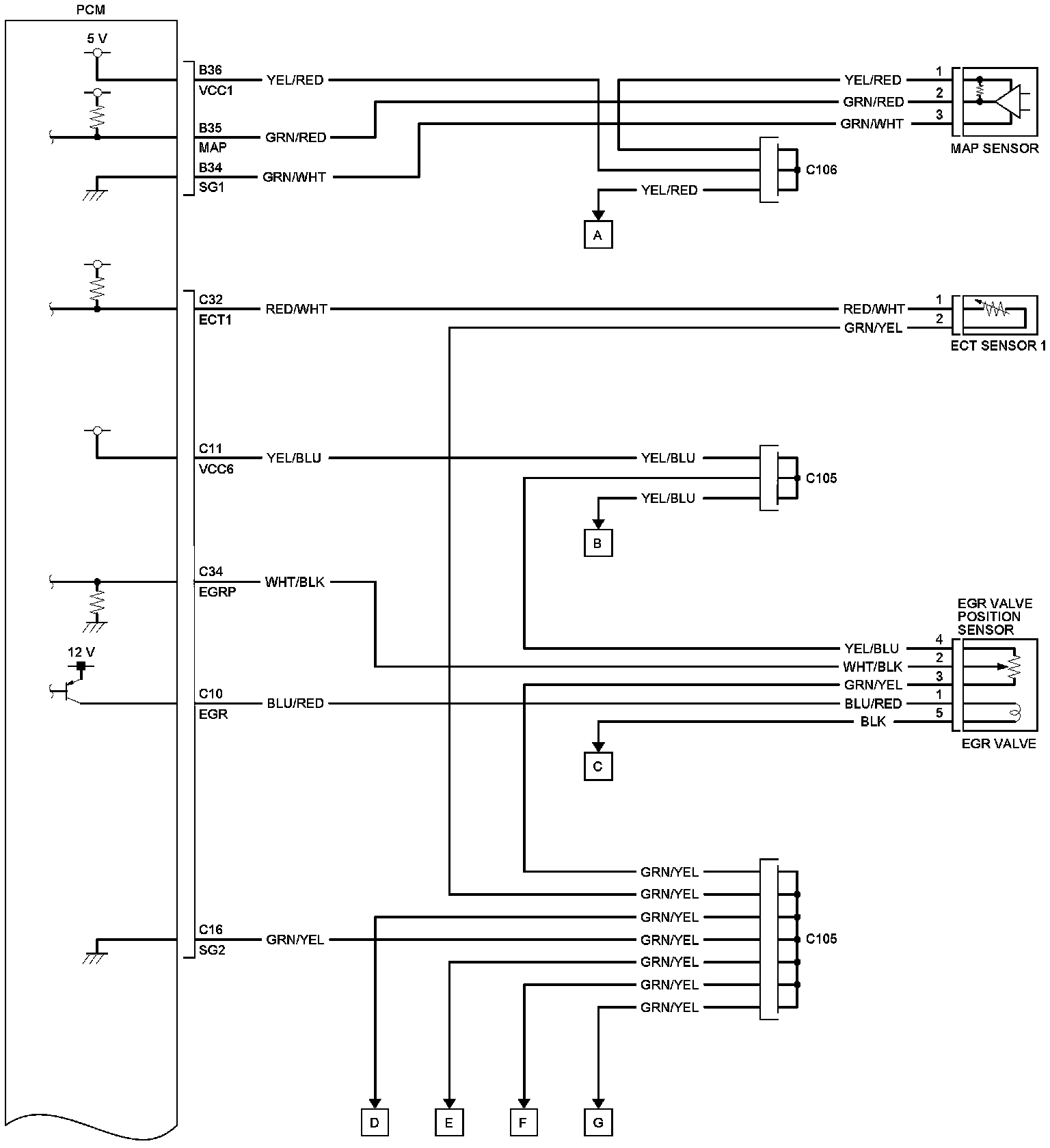PCM Inputs and Outputs at PCM Connector C (Circle) (49P)