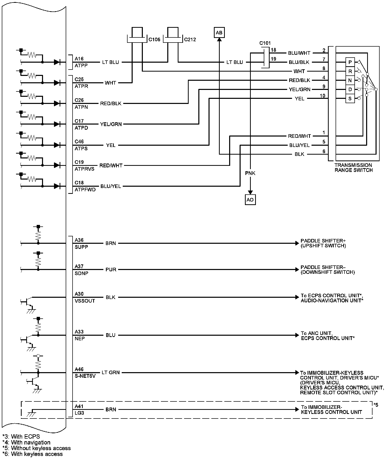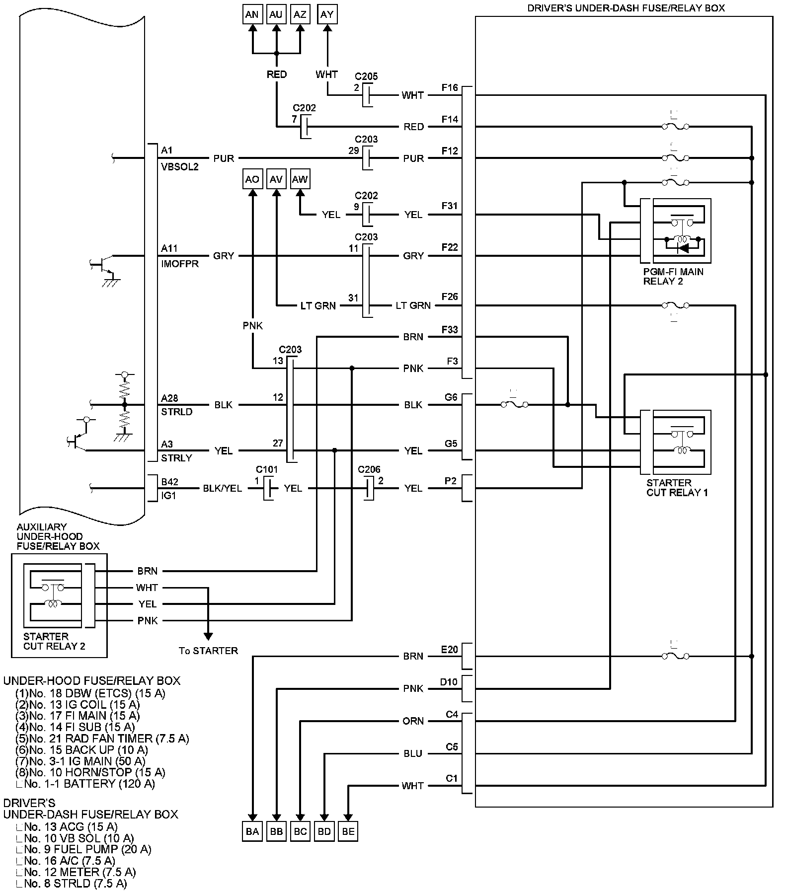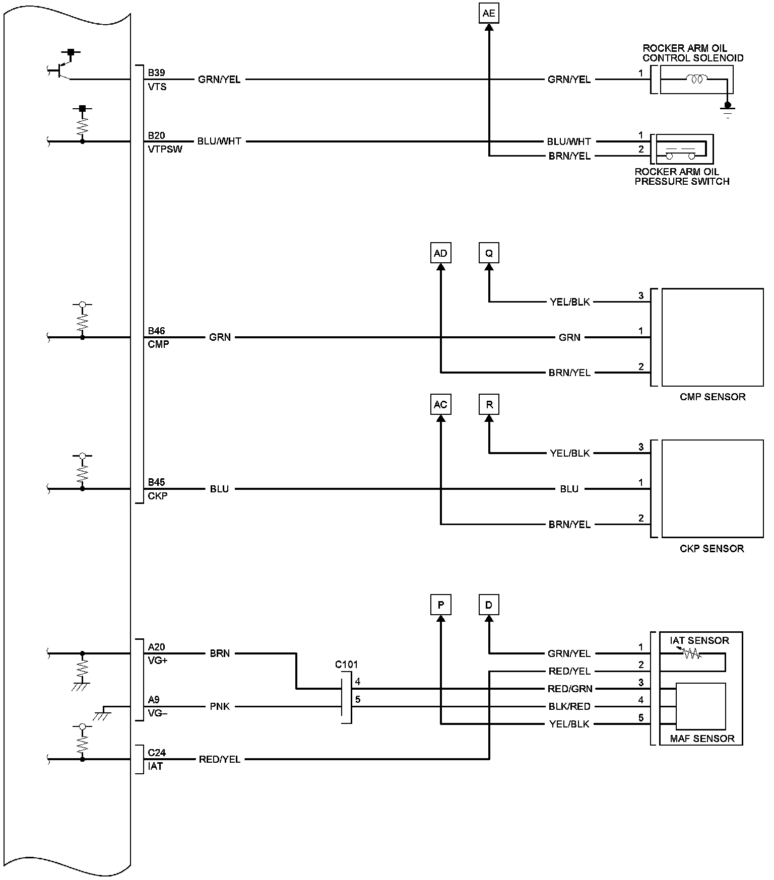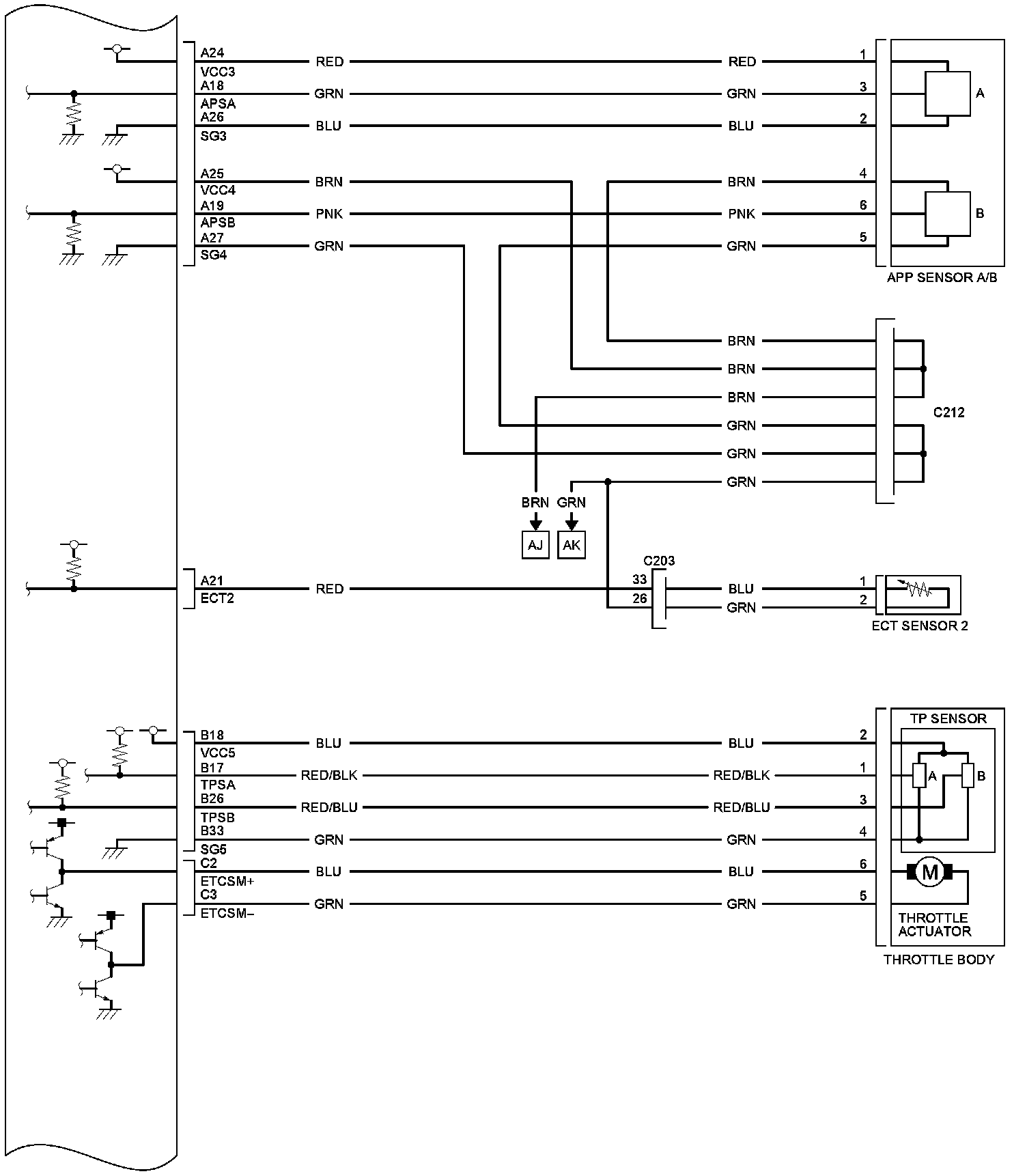 PCM Inputs and Outputs at PCM Connector C (Circle) (49P)