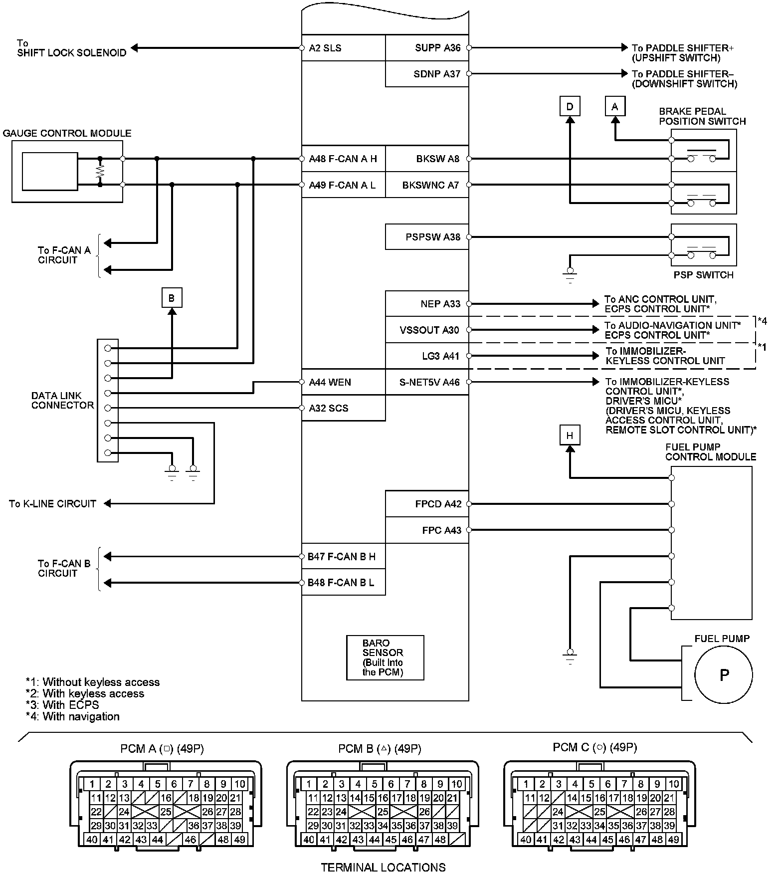 PCM Inputs and Outputs at PCM Connector B (Triangle) (49P)