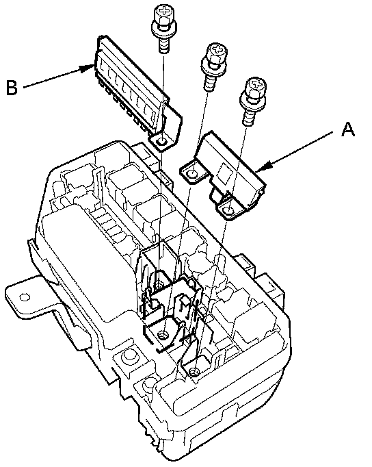1. Remove the under-hood fuse/relay box Under-Hood Fuse/Relay Box Removal and Installation.