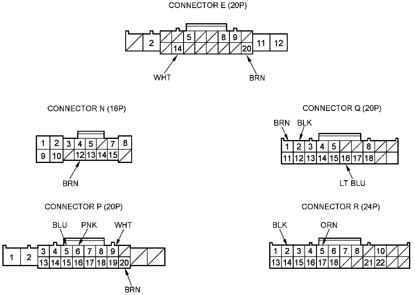 3. Disconnect driver's under-dash fuse/relay box connectors E, N, P, Q, and R.
