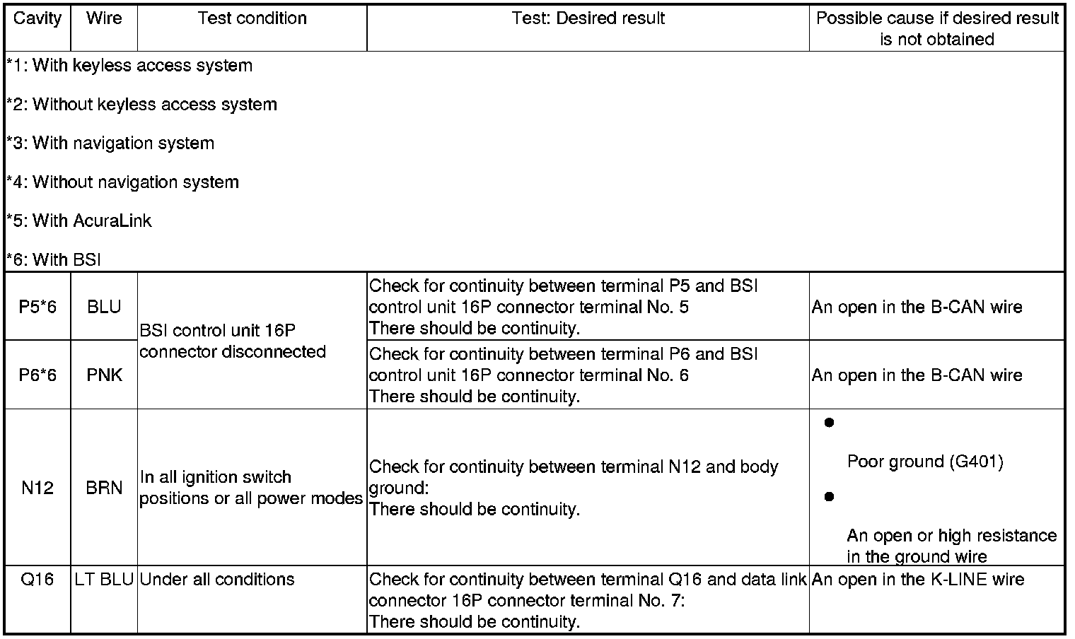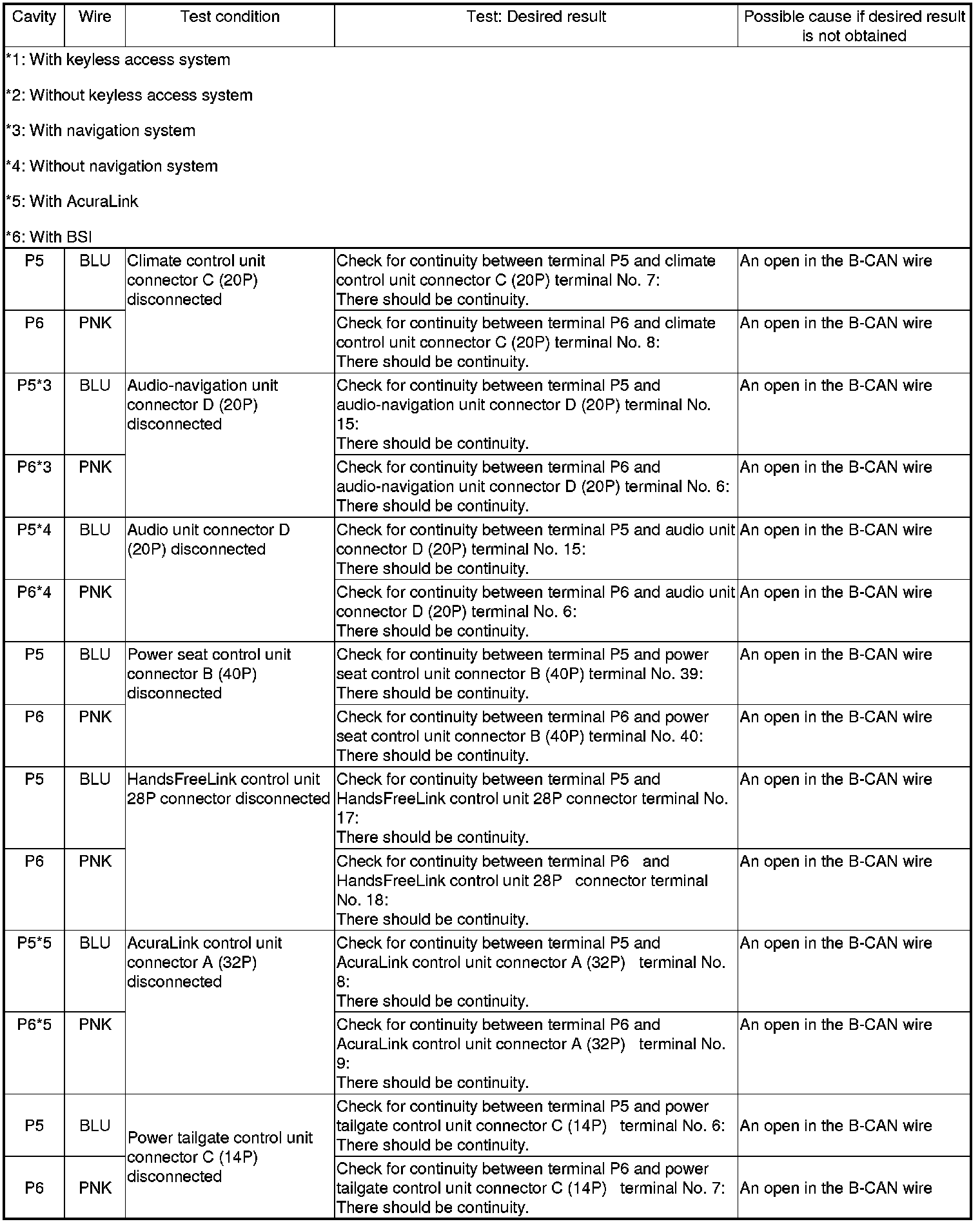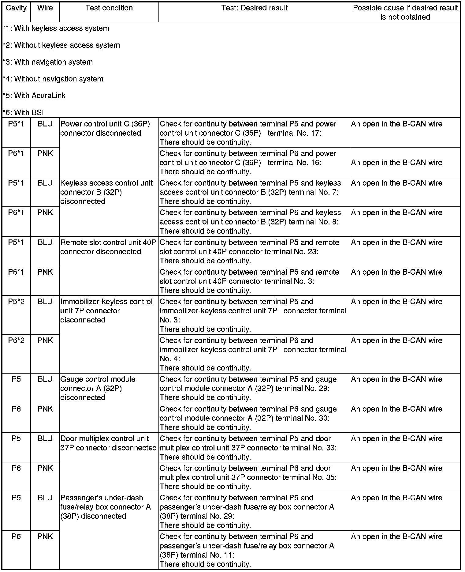 NOTE: Before testing, troubleshoot the multiplex integrated control system first, using B-CAN System Diagnosis Test Mode A Troubleshooting - B-CAN System Diagnosis Test Mode A.