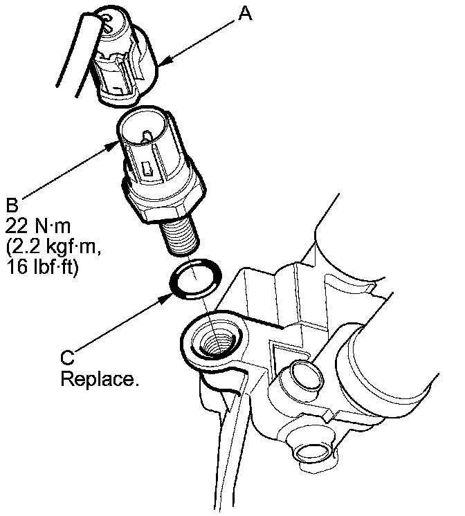 2. Install the parts in the reverse order of removal with a new O-ring (C).