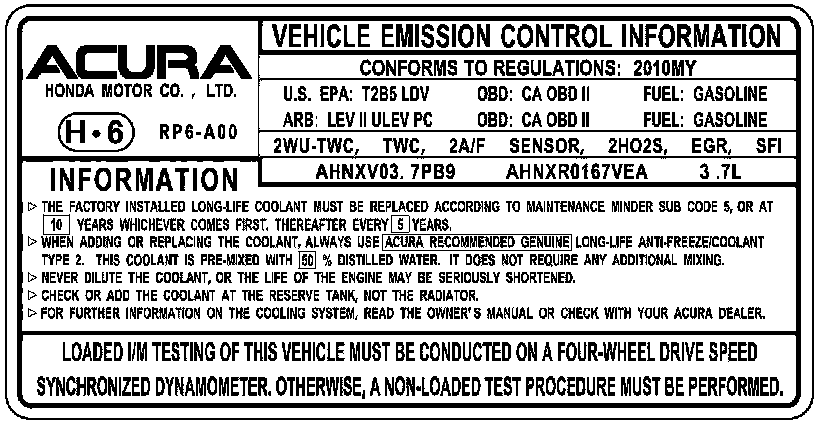 Under-Hood Emission Control Label