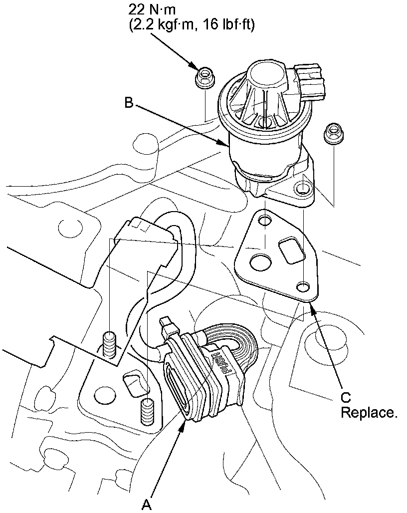 4. Install the parts in the reverse order of removal with a new gasket (C).
