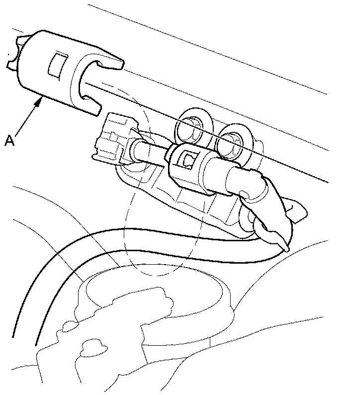 2. Connect the HDS to the data link connector (DLC) (A) located under the driver's side of the dashboard.
