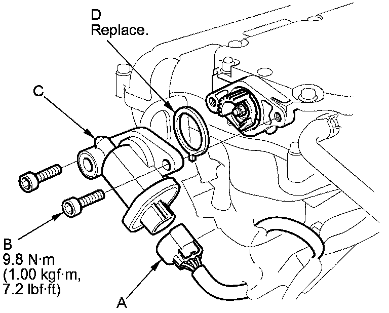 4. Install the parts in the reverse order of removal with a new O-ring (D).