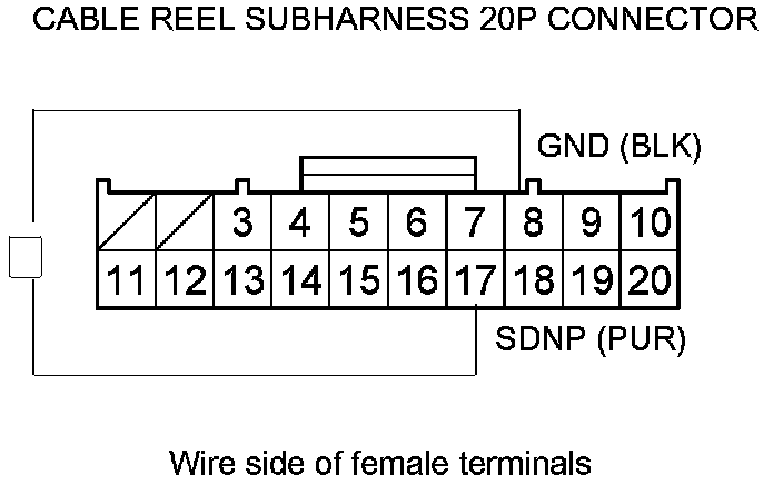 2. Check for continuity between cable reel subharness 20P connector terminals No. 8 and No. 17 when pressing the paddle shifter - (downshift switch) and when the paddle shifter - (downshift switch) is released.