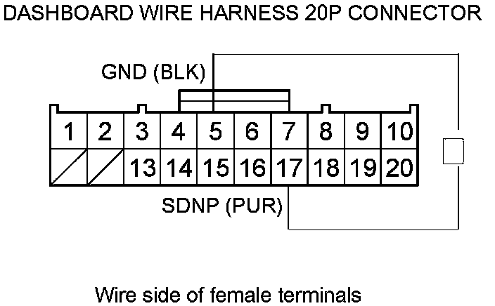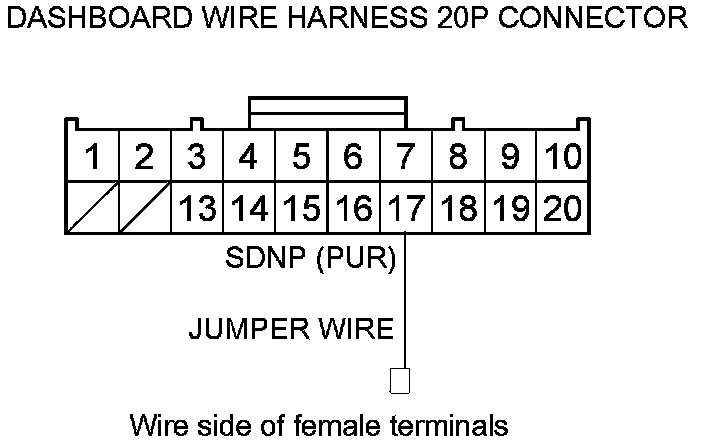 13. Connect dashboard wire harness 20P connector terminal No. 17 to body ground with a jumper wire.