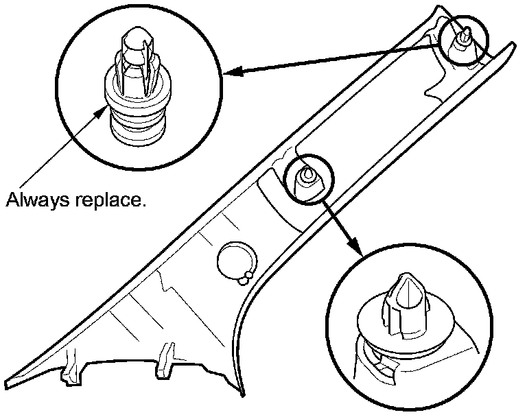 5. Remove the tape, and install the pillar trim.