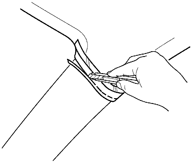 4. Carefully trim the headliner with a utility knife, reducing the overlap to less than 8 mm (0.32 in).