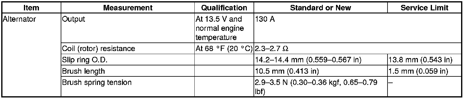 Charging System: Specifications