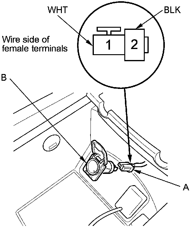 2. Disconnect the 2P connector (A) from the console accessory power socket (B).