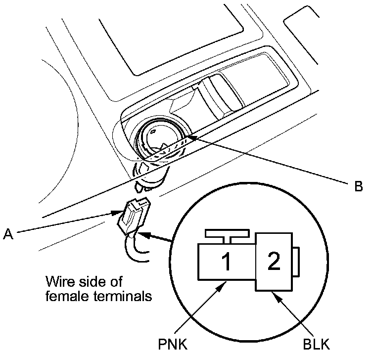 7. Check for continuity between front accessory power socket 2P connector terminal No. 2 and body ground. There should be continuity.