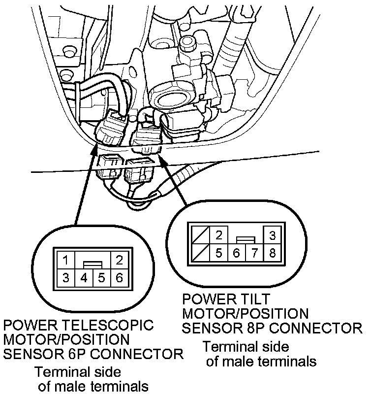 2. Disconnect the 6P connector and 8P connector from the power tilt/telescopic steering motors.