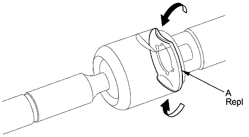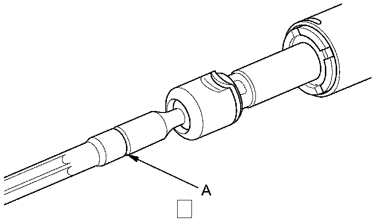 29. Coat the piston seal ring (A) and the inside of the piston seal ring sizing tool with power steering fluid, then carefully slide the tool onto the rack and over the piston seal ring.
